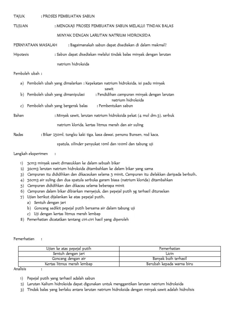 22.09.2021 · 5.7 buah kelapa sawit inkuiri 69 oil palm fruit perbincangan 5.8 pengekstrakan minyak sawit extraction of palm oil perbincangan 70 5.9 sifat kimia dan penggunaan minyak sawit 71 the chemical property and the uses of palm oil 5.10 tindakan pencucian sabun the cleansing action of soap praktis pengukuhan 5 bab 6 elektrokimia electrochemistry